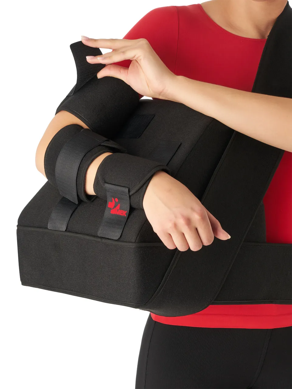 · отдельными манжетами-фиксаторами закрепите предплечье и плечо к подушке.