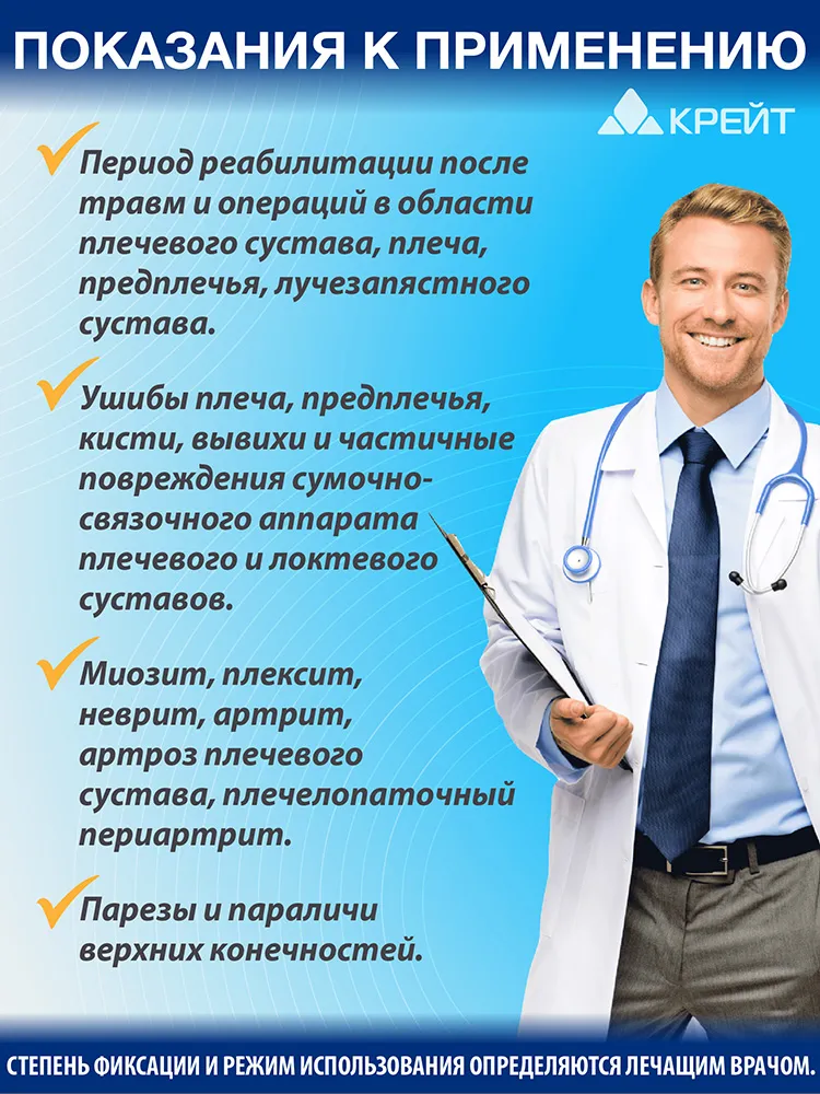 - Комфортная поддержка надплечья, плеча, предплечья и кисти после травм, иммобилизации и операций