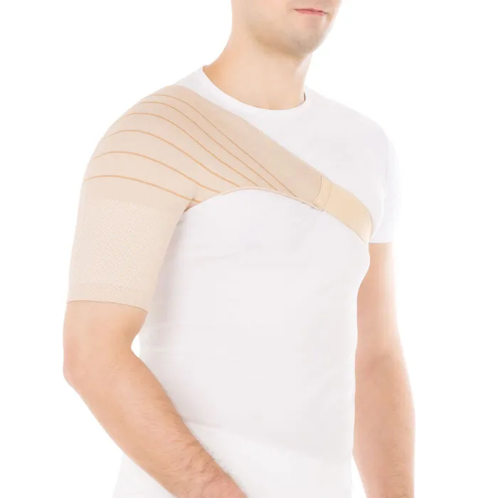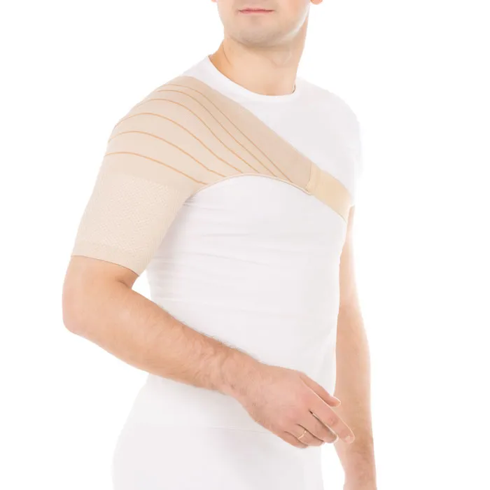 - изготовлен из трикотажного 3D-материала, обеспечивающего дифференцированную компрессию плечевого сустава