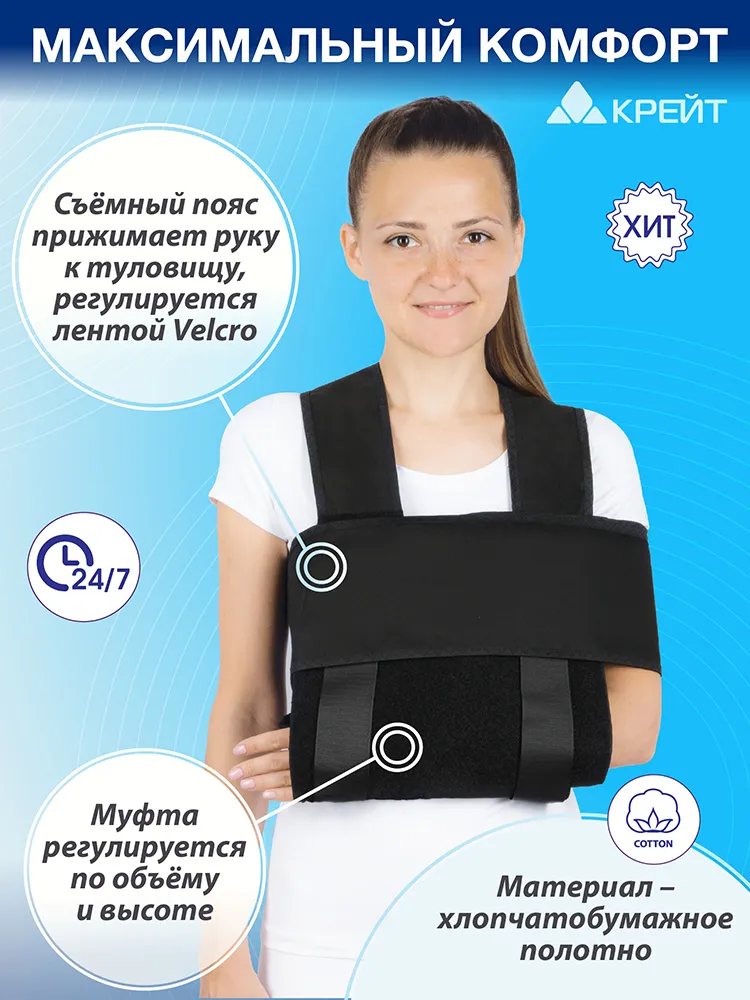- Муфта для поддержки верхней конечности в правильном положении регулируется по высоте и объему