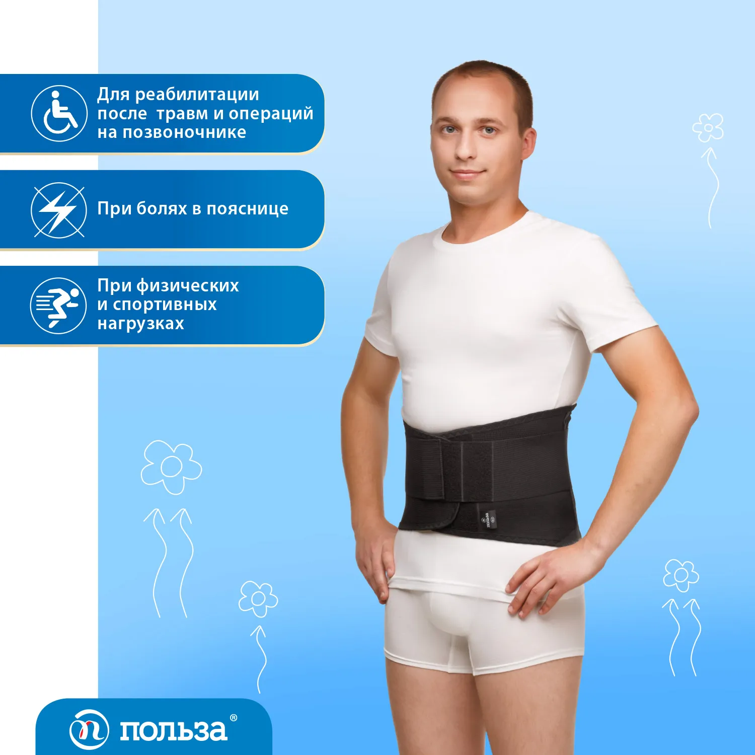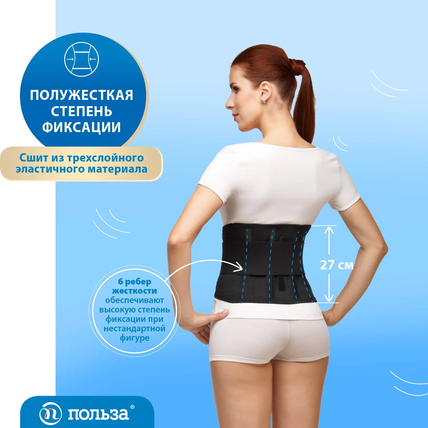 - умеренно фиксирует пояснично-крестцовый отдел позвоночника