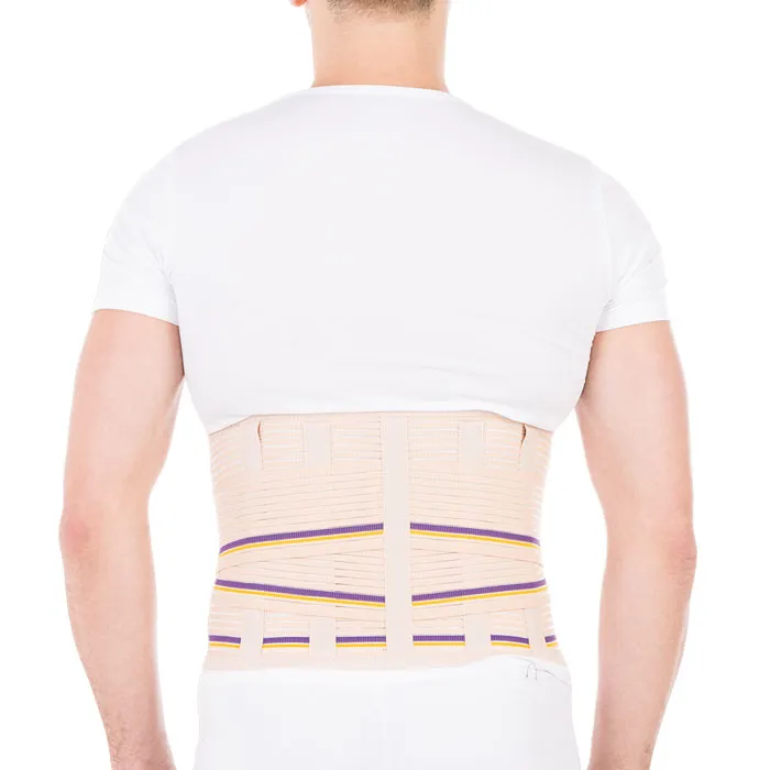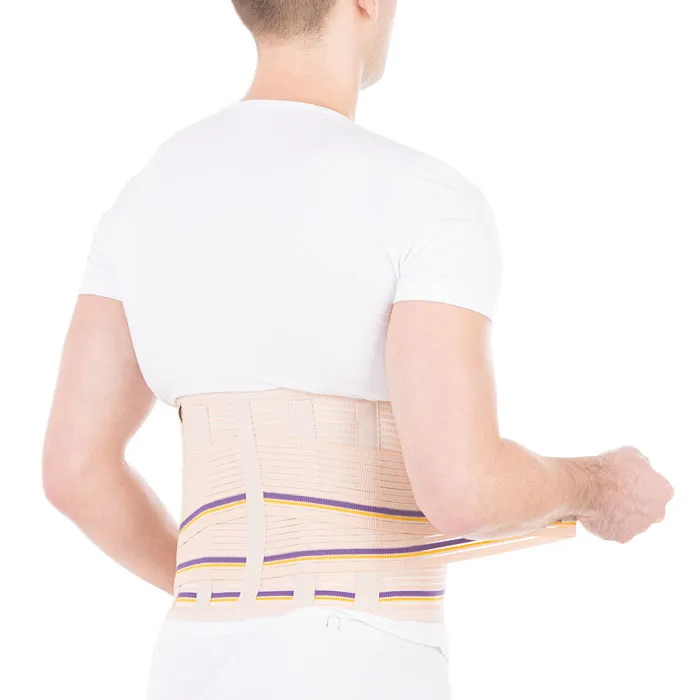 - в корсете установлены четыре моделируемых жестких ребра, используемых в острой фазе заболевания и обеспечивающих сильную фиксацию пояснично-крестцового отдела позвоночника