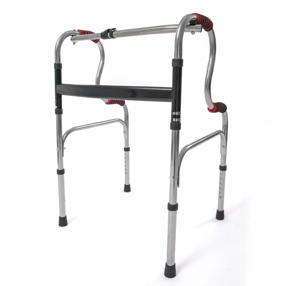 Ходунки для взрослых помогают держать равновесие и передвигаться без посторонней помощи. Металлический каркас – легкие, при этом очень прочные. Шесть уровней регулирования по высоте (телескопический механизм). Двухуровневые поручни. Два режима передвижения – шагающий и фиксированный. С резиновыми антискользящими колпачками на ножках и мягкими накладками на ручках. Складываются – удобно перевозить и хранить.