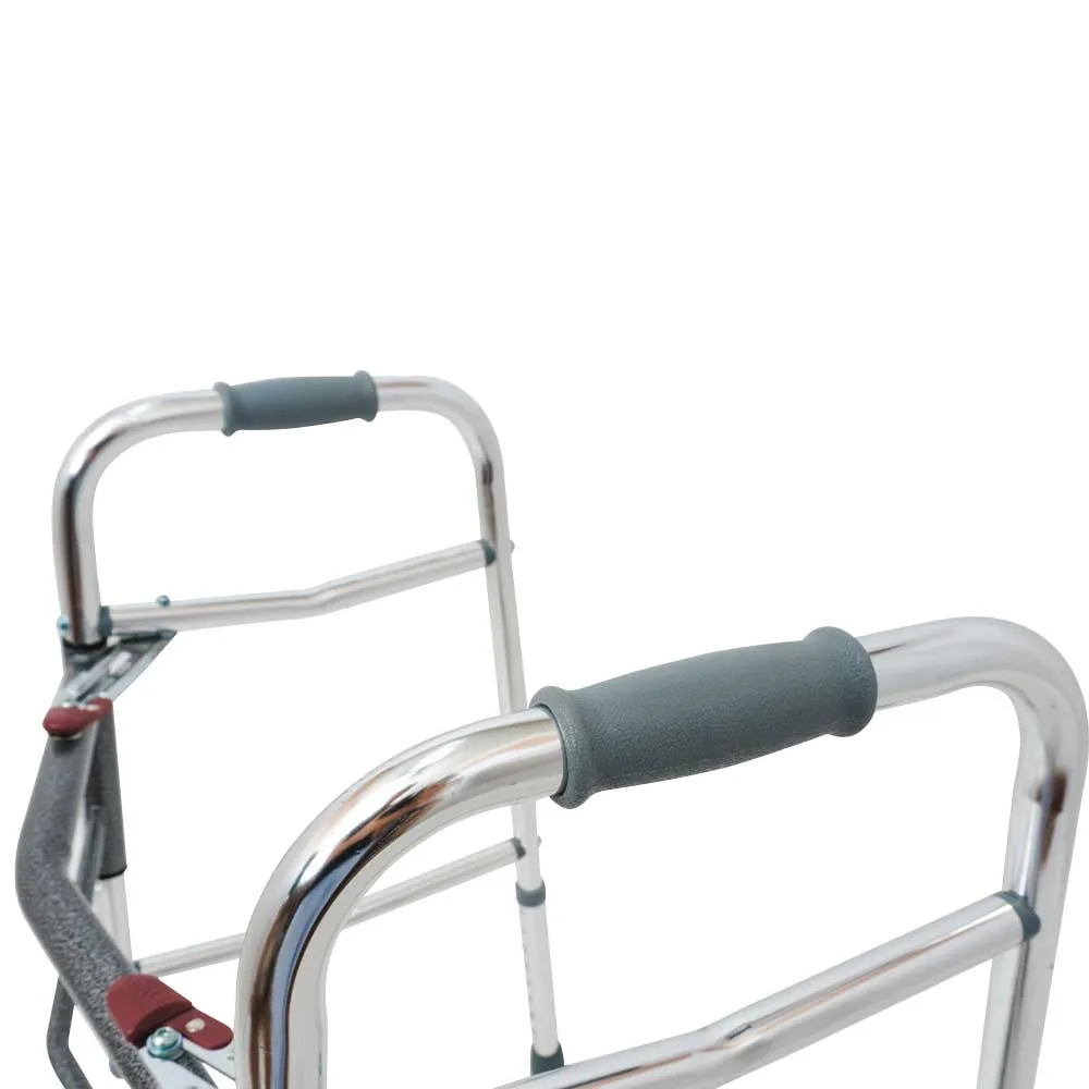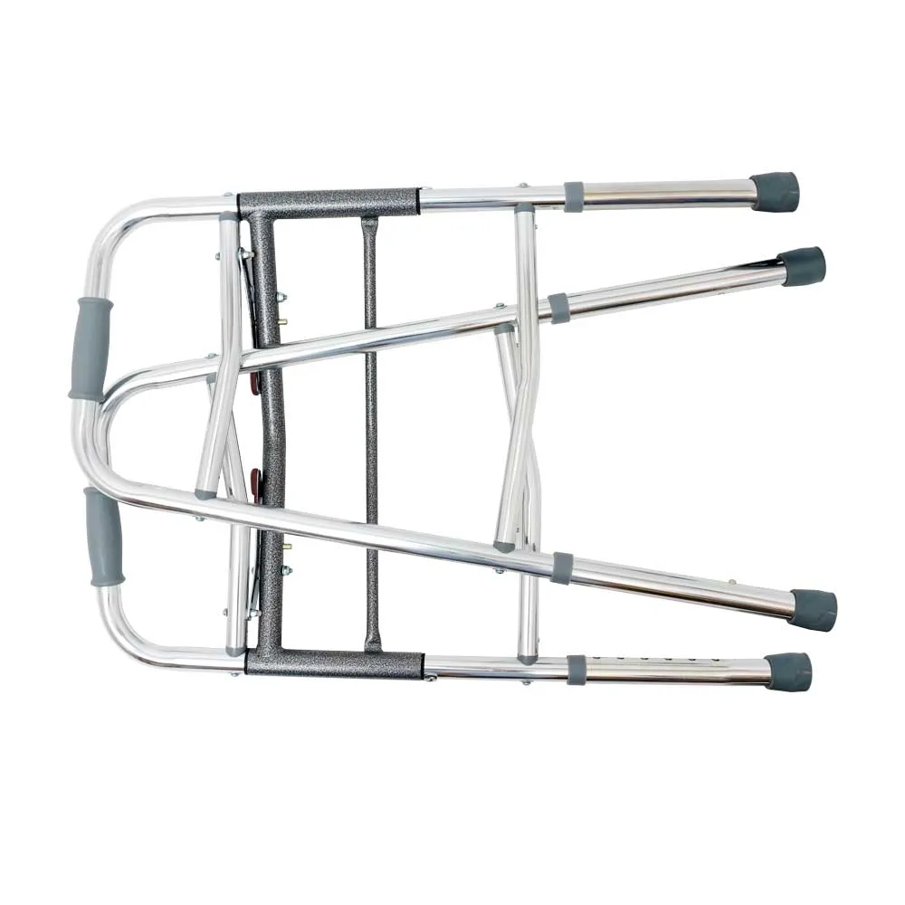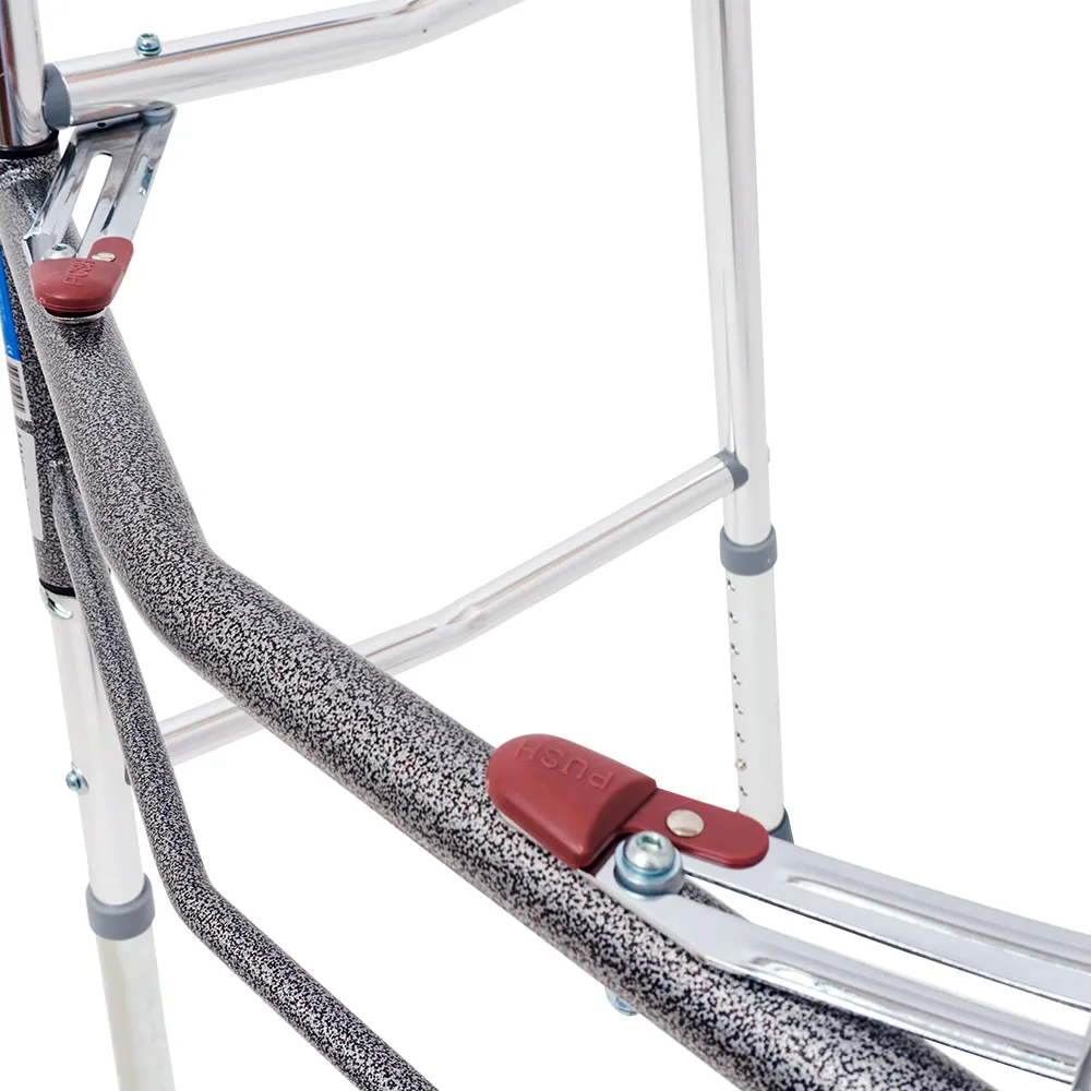 Складные ходунки 10185-BA из алюминия с усиленным корпусом способны выдержать нагрузку в 225 кг. Расстояние между поручнями 45 см, шаг регулировки высоты 2,5 см. Ходунки регулируются по высоте от 79 до 96 см и без труда подойдут для роста 160-180 см.