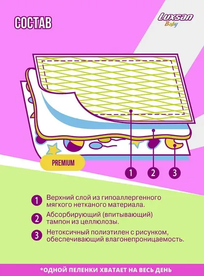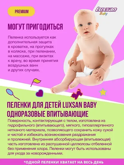 Пеленки LUXSAN Baby Premium впитывающая для детей с рисунком