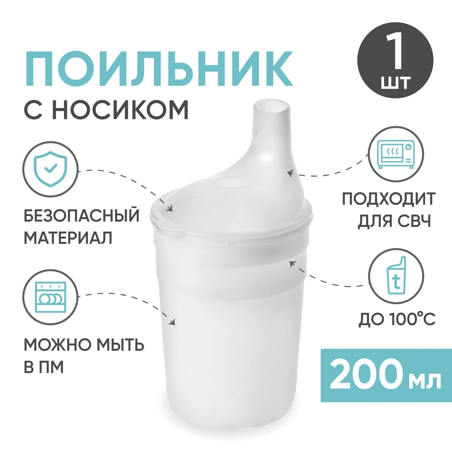 - Прозоачный стакан-поильник с широким носиком Объем: 200мл подойдет для кормления детей и людей с ограниченными возможностями. С его помощью можно употреблять различные супы, бульоны, отвары, а также соки и воду.