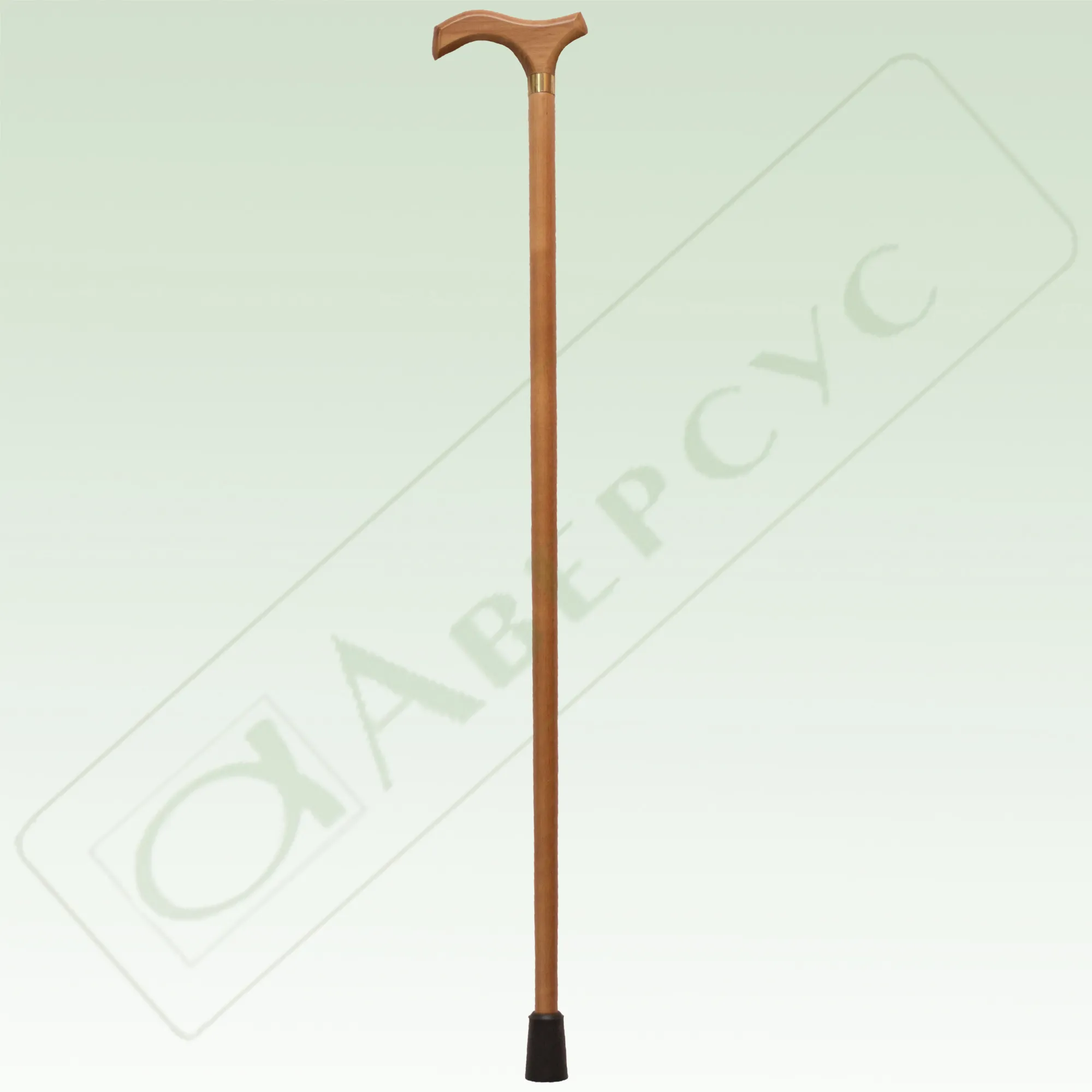 Деревянная опорная трость изготовлена из березы, имеет коническую фору (сужается сверху вниз). Ручка из дуба или бука. Оснащается фигурной анатомической ручкой, и декоративным металлическим кольцом из нержавеющей стали. Выпускается с различными тонировками: натуральный, под орех, дуб и др.